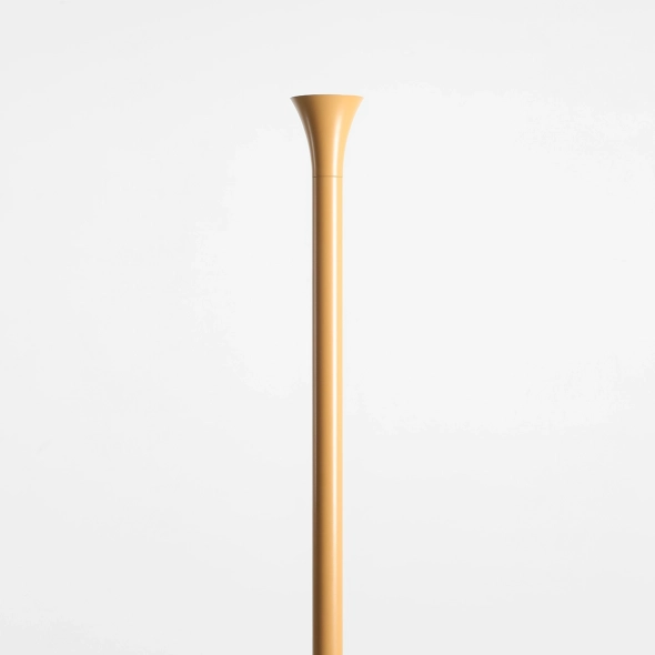 KIBO FLOOR OCHRE (proj. Nikodem Szpunar) łączy rzeźbiarską formę z ciepłem ochrowej barwy. Ten odcień rozświetla wnętrze w subtelny sposób - dodaje przytulności, ale nie staje się nachalny. Stalowa konstrukcja malowana proszkowo zapewnia trwałość i idealnie równą powierzchnię, a klosz o charakterystycznym dla kolekcji Kibo profilu prowadzi światło w górę, tworząc miękką, komfortową poświatę.