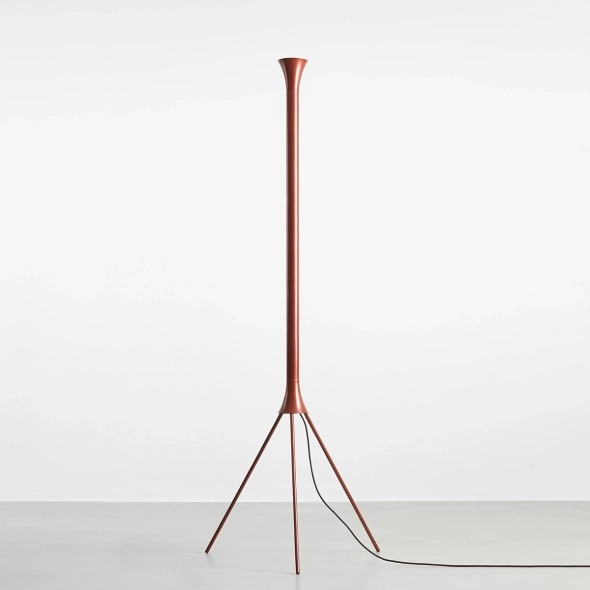 KIBO FLOOR RUSTY (proj. Nikodem Szpunar) to lampa podłogowa o barwie inspirowanej naturalną materią - głębokim, ceglasto-czerwonym tonem, który świetnie współgra z betonem, cegłą, drewnem i metalem. Minimalistyczna, smukła sylwetka sprawia, że całość jest lekka wizualnie, a stalowy klosz malowany proszkowo zachowuje elegancką jednolitość powierzchni i wysoką odporność na codzienne użytkowanie.