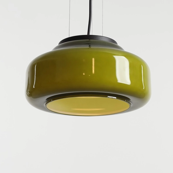 Bardzo duża lampa wisząca BONBON 2.0 L LIME (fi 40 cm) projektu Mikołaja Nicera (Nicer Design), to nowa, lżejsza odsłona kolekcji, z uproszczoną formą oprawy, która jeszcze bardziej eksponuje piękne polskie, malowane szkło. Klasyczny klosz w kolorze głębokiej zieleni wprowadza szlachetny akcent do wnętrza i zapewnia przyjemne, nastrojowe światło. Kolor szkła subtelnie zmienia się po zapaleniu światła: od intensywnej zieleni po delikatną limonkę! Doskonale sprawdza się w salonach, kawiarniach i przestrzeniach komercyjnych, zarówno solo, jak i w kompozycjach świetlnych.