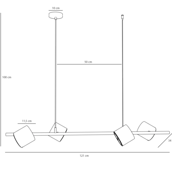 Lampa czteropunktowa łączy w sobie prostotę formy z przemyślaną funkcjonalnością. Cztery reflektory na ruchomych przegubach tworzą charakterystyczną, geometryczną kompozycję, która doskonale wpisuje się w design nowoczesnych wnętrz. Lampa czteropunktowa BOT posiada metalowy, czarny korpus, a matowa powierzchnia doskonale współgra z różnymi materiałami, takimi jak drewno, czy beton, a także z wieloma stylami wnętrzarskimi – od minimalistycznych, przez nowoczesne, aż po loftowe. Szerokość lampy wynosi 120 cm, wysokość 100 cm, a głębokość 34 cm, co czyni ją idealnym rozwiązaniem do oświetlenia średnich i dużych pomieszczeń. Średnica każdego klosza to 11,4 cm. Lampa czteropunktowa posiada klasę szczelności IP20, co oznacza ochronę przed kurzem i sprawia, że nadaje się do użytku w pomieszczeniach wewnętrznych. To uniwersalne rozwiązanie, które równie dobrze sprawdzi się w minimalistycznym salonie, jak i w loftowym biurze.