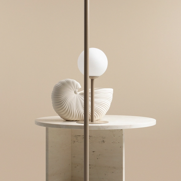 Pinne Floor Beige to lampa podłogowa (z najnowszej kolekcji Artera Colours) o prostej bryle, zwieńczona kulistym, matowym kloszem polskiej produkcji. Lampa z pewnością odnajdzie swoje miejsce w prostych, jasnych, skandynawskich przestrzeniach, a przyjemny beżowy odcień oprawy współgrający z bielą klosza, wpisze się w ich charakter.