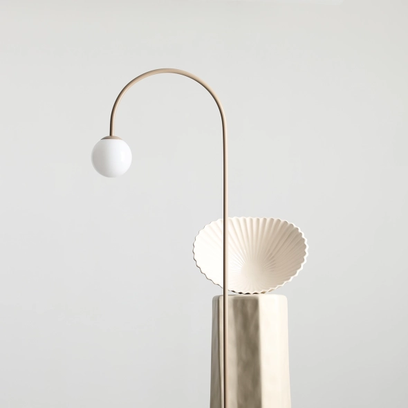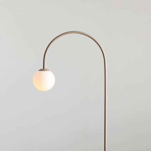 Nietuzinkowa lampa stojąca UNA BEIGE w oryginalnym kształcie łuku i spokojnym, eleganckim, beżowym wykończeniu to ciekawy element dekoracyjny oraz dodatkowe źródło światła w modnym wnętrzu. Obłe, przyjemne dla oka formy i staranne wykończenie lampy tj. polskie, opalowe szkło, satynowy lakier proszkowy oraz przewód w oplocie w kolorze stelaża lampy są gwarantem najwyższej jakości i dbałości o każdy szczegół.