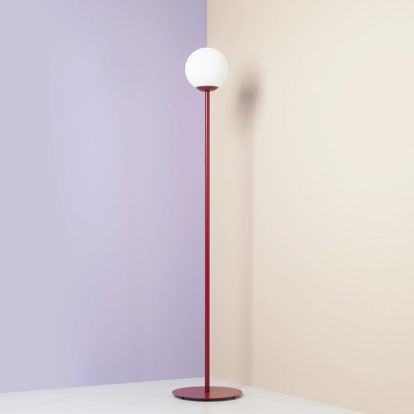 Pinne Floor Red Wine to lampa podłogowa o prostej bryle, zwieńczona kulistym, matowym kloszem polskiej produkcji. Lampa z pewnością odnajdzie swoje miejsce w prostych, jasnych, skandynawskich przestrzeniach, a głęboki czerwono-winny odcień oprawy będzie ciekawym akcentem we wnętrzu.