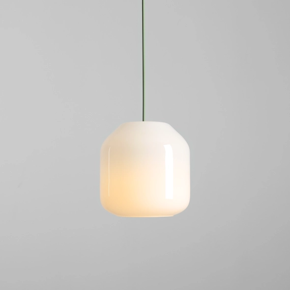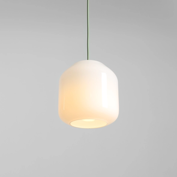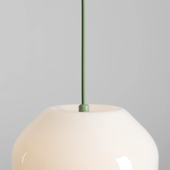 weißes Opalglas, Kabel in zartem Grün (RAL 6021)