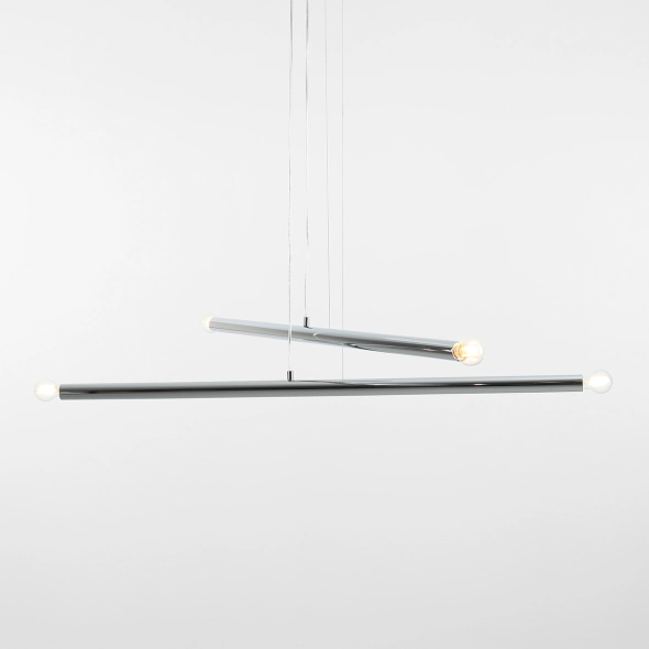 Die Pendelleuchte aus zwei schlanken, meterlangen Röhren mit E14-Lichtquelle vereint Schlichtheit und Eleganz. Die edle Chromoberfläche betont den modernen Charakter und verleiht dem Raum dezenten Glanz; das minimalistische Design passt zu modernen Interieurs und bleibt dabei zeitlos und vielseitig.