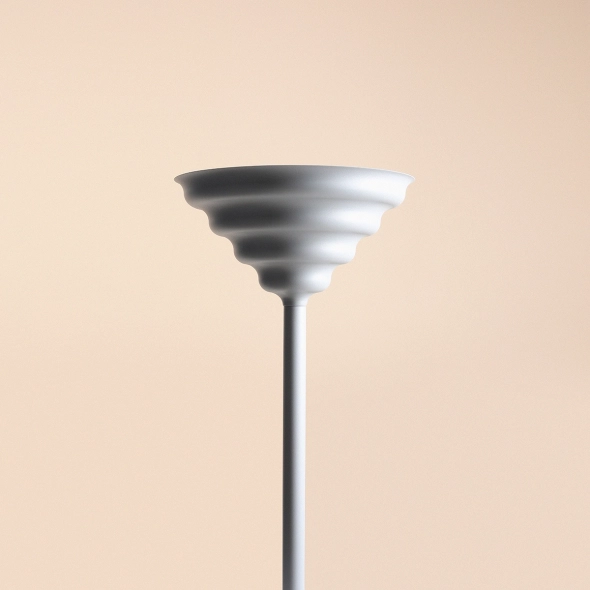 Die Stehleuchte aus der Fala-Kollektion in hellblau-grau eignet sich ideal als interessante Dekoration und zusätzliche Lichtquelle. Ihr ungewöhnliches Format und das futuristische Pop-Art-Design sorgen für ein einzigartiges Ambiente im Raum. Design: Nikodem Szpunar.