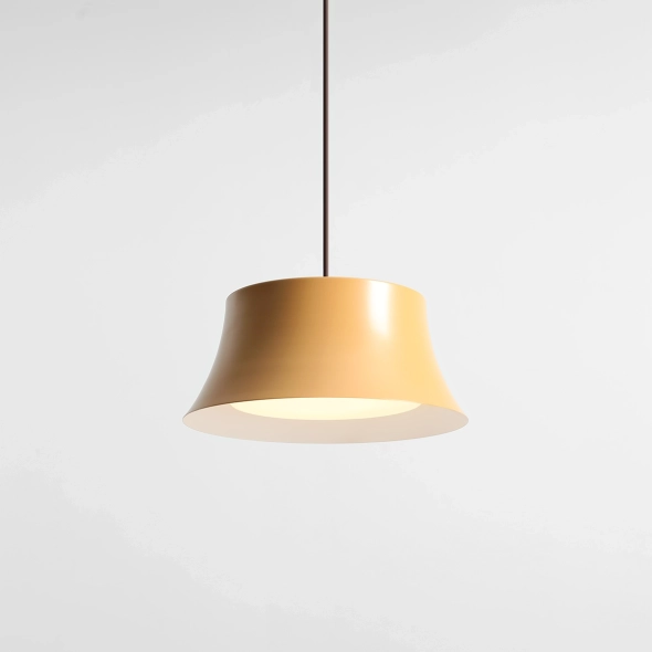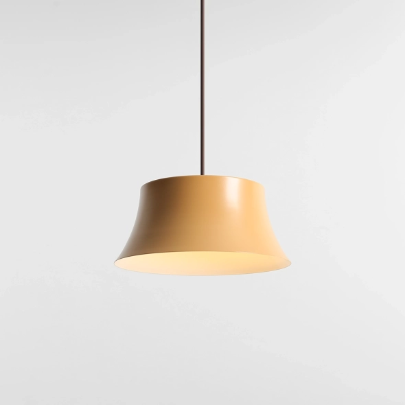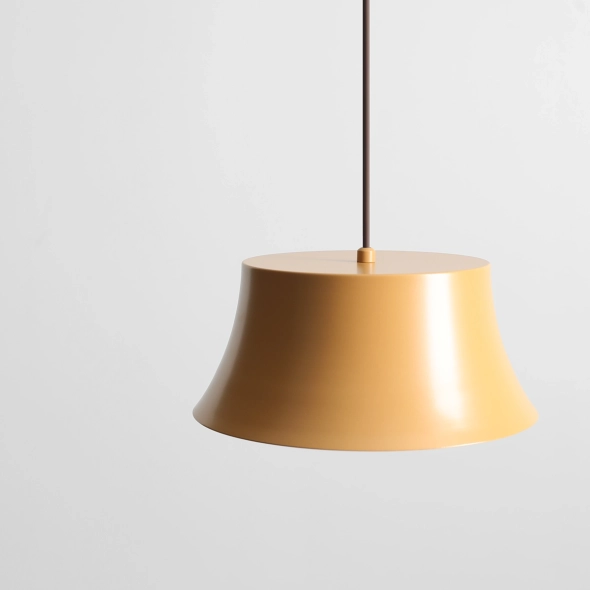 Die Pendelleuchte Kibo Ochre (Design: Nikodem Szpunar) ist eine warme, dezente Ergänzung der Kollektion. Sie vereint minimalistische Geometrie mit einem honigfarbenen Ockerschirm (RAL 1011). Der pulverbeschichtete Stahlschirm besticht durch seine gleichmäßige, robuste Oberfläche und verleiht dem Raum mit seinem breiten Durchmesser (25 cm) eine ruhige, aufgeräumte Atmosphäre. Die weiße Innenseite des Schirms reflektiert das Licht und sorgt so für eine gleichmäßige Ausleuchtung und ein sanftes Ambiente – ideal für Esszimmer, Küchen und Wohnbereiche. Dank des verstellbaren Kabels lässt sich die Aufhängehöhe flexibel an Raum und Funktion anpassen.