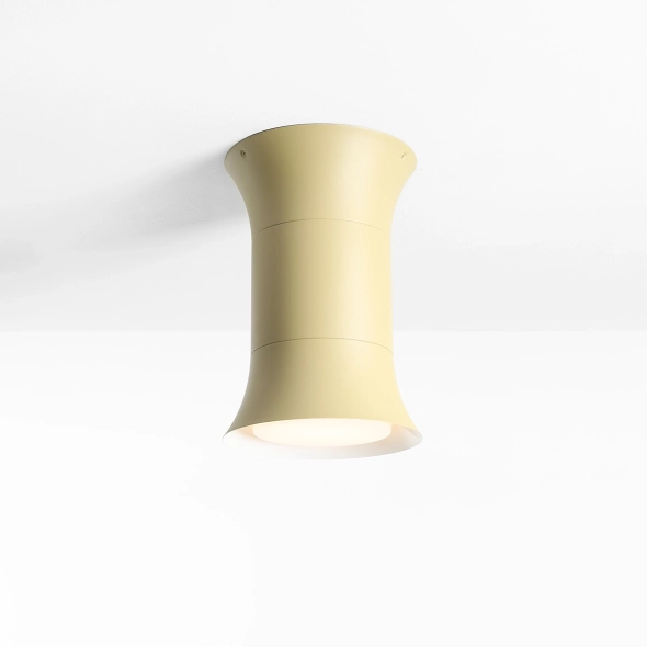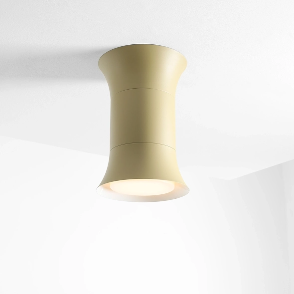 Kibo Pistachio L verleiht jedem Interieur mit seinem einzigartigen, eleganten Design Frische. Der pistazienfarbene Schirm (RAL 1020) harmoniert perfekt mit der breiten, kräftigen Form und unterstreicht die retrofuturistische Geometrie der Kollektion. Der nach unten öffnende Schirm spendet sanftes, gerichtetes Licht, das den Raum behaglich erfüllt, ohne ihn zu erdrücken – er schafft eine angenehme Atmosphäre und verleiht der Decke ein harmonisches Gesamtbild.