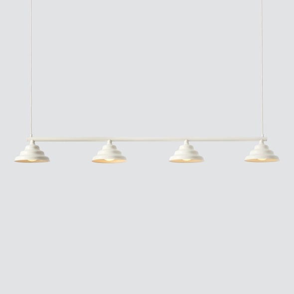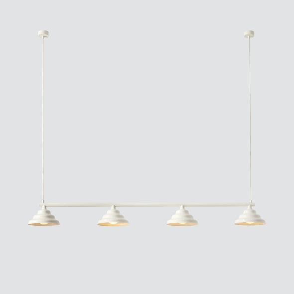 Die breite Pendelleuchte aus der Kollektion FALA Szpunar x Artera vereint moderne Eleganz mit Funktionalität und eignet sich dank ihrer beeindruckenden Breite von 166 cm ideal für große Tische, Kücheninseln oder geräumige Esszimmer. Die leichte, wellenförmige Form der Metallschirme sorgt für Harmonie, während die Glas-Kugeln mit G9-Lichtquellen ein angenehmes, gleichmäßiges Licht spenden; die Kabellänge ist individuell anpassbar.