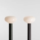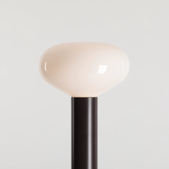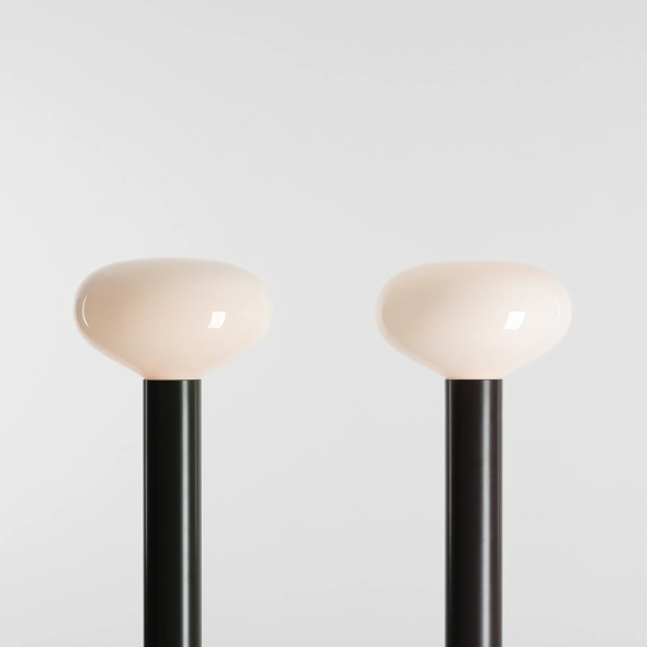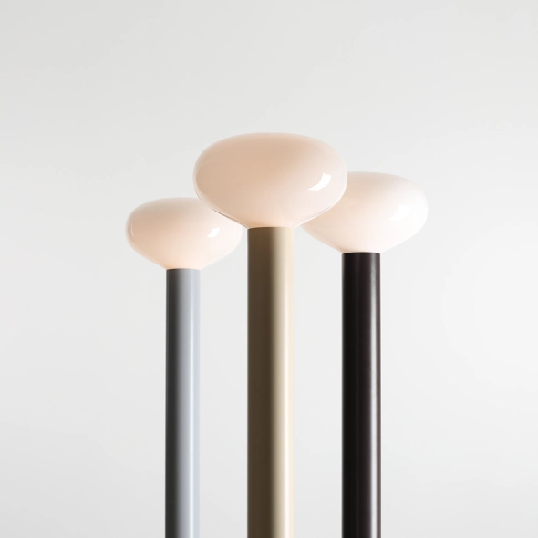 Die Glasschirme werden in einer polnischen Glasmanufaktur gefertigt – mundgeblasen, leicht und subtil lichtstreuend. Die Stahlelemente setzen mit ihrer zylindrischen, soliden Form einen Kontrapunkt zum filigranen Schirm. Deshalb funktioniert FLO sowohl als stimmungsvolle Beleuchtung als auch als dekorativer Akzent, der unübersehbar bleibt.