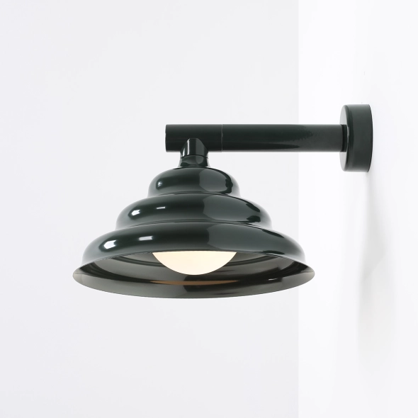 Wandleuchte aus der Fala-Kollektion, entworfen von Nikodem Szpunar, mit markanter Form, feinen Details und tiefgrüner Farbe. Das drehbare Arm ermöglicht eine leichte Verstellung des Schirms; Lichtquelle ist im Lieferumfang enthalten.