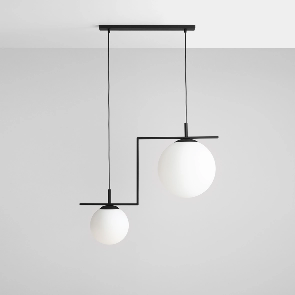 Zac to elegancka lampa wisząca, której dwie kule z matowego, białego szkła delikatnie rozpraszają światło, tworząc wyjątkową atmosferę. Lampa może być podłączona do dwóch faz, co pozwala na włączenie obu kul jednocześnie lub tylko jednej, w zależności od potrzeb. To idealny wybór do wnętrz wymagających zarówno dobrego oświetlenia, jak i subtelnego klimatu.