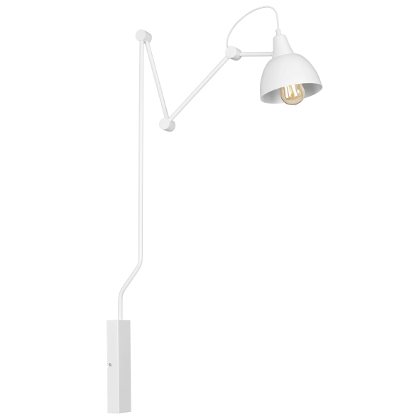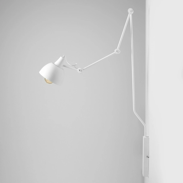 Nowoczesny, plafon ścienny ze źródłem światła umieszczonym na potrójnie łamanym ramieniu lampy to doskonałe uzupełnienie oświetlenia wnętrz. Ramię lampy posiada możliwość mocnego wysunięcia nad miejsce pracy lub wypoczynku, tworząc odpowiednią atmosferę. Malowany proszkowo na biały mat, dostępny również w graficie i czerni