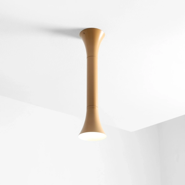 Kibo Ceiling Ochre L (proj. Nikodem Szpunar) to plafon, który łączy rzeźbiarską formę z ciepłem barwy inspirowanej naturalnymi pigmentami. Miodowy odcień Ochre wnosi do wnętrza spokojną energię i dekoracyjny akcent, nie tracąc przy tym elegancji. Stalowy klosz malowany proszkowo zachowuje jednolitą, szlachetną powierzchnię, a charakterystyczne otwarcie ku dołowi kieruje światło w sposób miękki i kontrolowany - tak, by rozświetlać przestrzeń równomiernie i komfortowo.