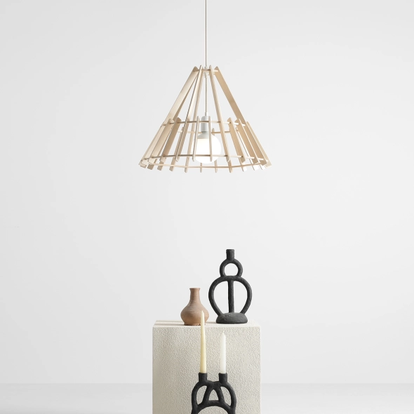 Lampa wisząca FERB Medium to designerska propozycja wykonana z naturalnej, brzozowej sklejki. Charakterystyczne poprzeczne żebra klosza nadają lampie lekkości i sprawiają, że światło rozprasza się w ciekawy, dekoracyjny sposób. Uniwersalny rozmiar sprawia, że FERB Medium świetnie sprawdza się nad stołem w jadalni, w salonie czy w przestrzeniach komercyjnych, gdzie pełni zarówno funkcję praktyczną, jak i ozdobną. To idealny wybór dla osób, które cenią naturalne materiały i unikalny design.