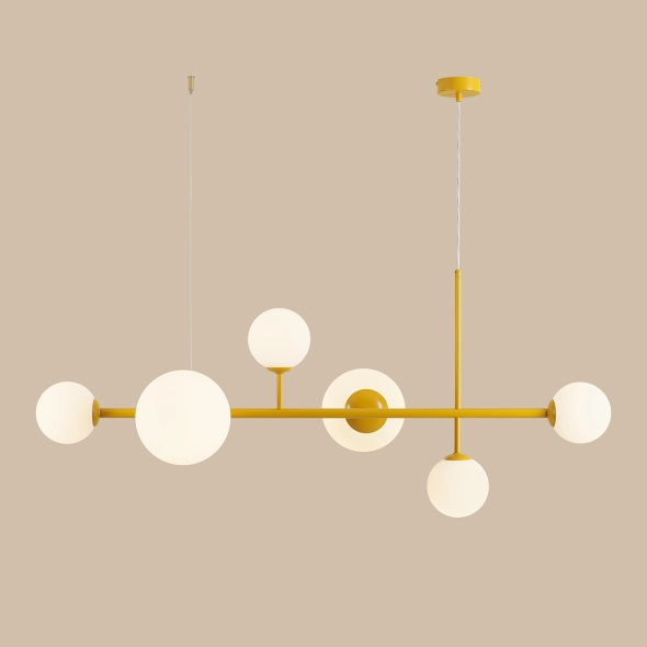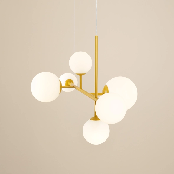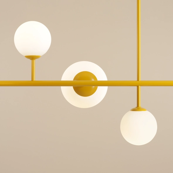 Żółta lampa wisząca DIONE 6 MUSTARD to nowa odsłona bestsellerowej kolekcji DIONE. Oprawa w energetycznym wykończeniu musztardy efektownie kontrastuje z mlecznymi kloszami ze szkła z polskiej Huty Szkła. To elegancka propozycja dla miłośników nietuzinkowych wnętrz – lampa pięknie rozprasza światło, tworząc ciepły i nastrojowy klimat nad stołem w jadalni lub w salonie. W outlecie dostępne 2 szt. pełnowartościowego towaru (związane z nadwyżką produkcji wzoru).