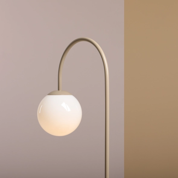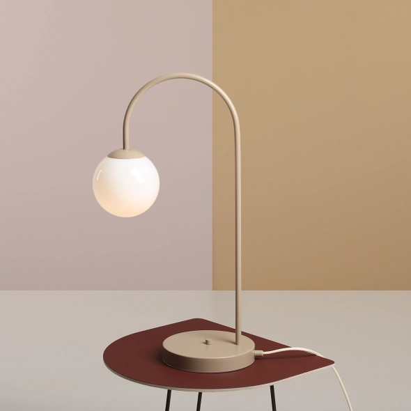 Table lamp with very good proportions, fashionable design and delicate beige color. It skillfully combines the spherical form of the opal shade with the modern shape of the fixture. The lamp nicely spreads the light coming out of the spherical lampshade of Polish manufacture. Perfect proportions, high quality and subtle color make Una Table Beige not only a lamp that illuminates the space above the table or bedside table, but will become a unique decoration of the interior.