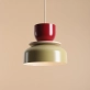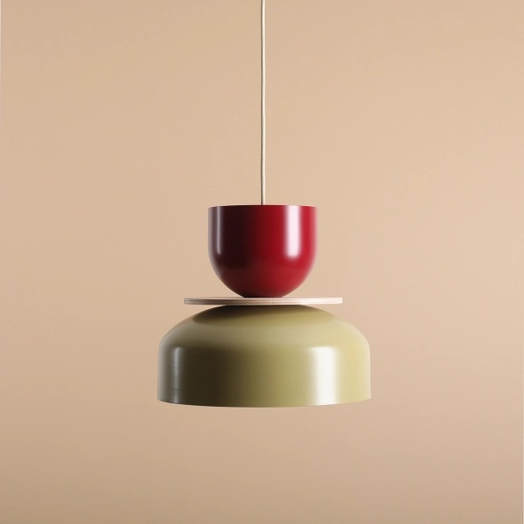 The Uto lamp in an interesting juxtaposition of colourful shades. We have combined a large pistachio shade with a diameter of 30cm (which is painted white on the inside to achieve a nicely reflected, bright light) with a dark burgundy shade with a diameter of 15cm. The whole is juxtaposed with light accents in the form of a decorative wooden disc (which can be omitted during assembly) and a cream or black braided cable and a matching mounting rosette. The Uto lamp will be a decoration of a modern living room, bedroom or dining room, it will present itself interestingly over the table.