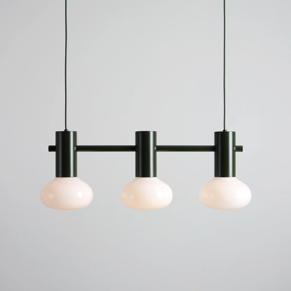 The green power of nature in triple! FLO 3 MOSS combines three shades in forest green to create a lamp that impresses with its organic form and calm light. Beautiful white glass gently diffuses the light, and the whole supported by a precisely designed connector looks coherent and elegant. A great choice for interiors where contact with nature is important - organic, japandi, vintage or modern classic style will gain a new natural touch thanks to it.