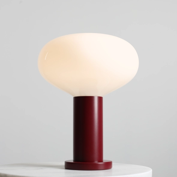 Sensual and rich – FLO TABLE RUBY M immediately catches the eye. Its burgundy hand-blown glass shade radiates warmth and elegance, adding a touch of refined expression to the interior. The form remains subtle and organic, while the deep color adds distinctive depth.