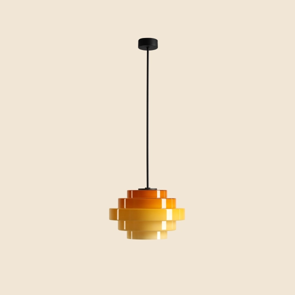 Colour yellow gradient, dark upper shade, light lower shade, white interior, black pole