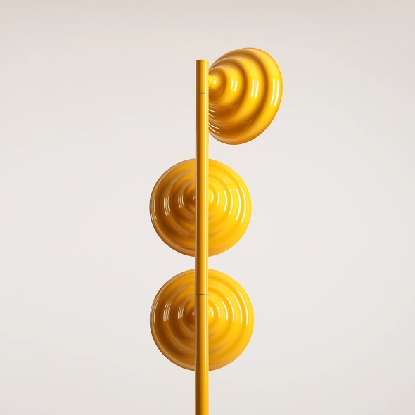 The Floor 3 floor lamp in an energetic yellow color is an interesting option for side lighting in interiors. The light emitted from three wavy lampshades can be adjusted in different directions using the functional rotation of the fixture (the range of movement of each lampshade is 45°). Floor 3 is primarily an interesting design, combining the shape and color of a pop art-style fixture with retro shades. The lamp was designed by Nikodem Szpunar exclusively for the Artera brand.