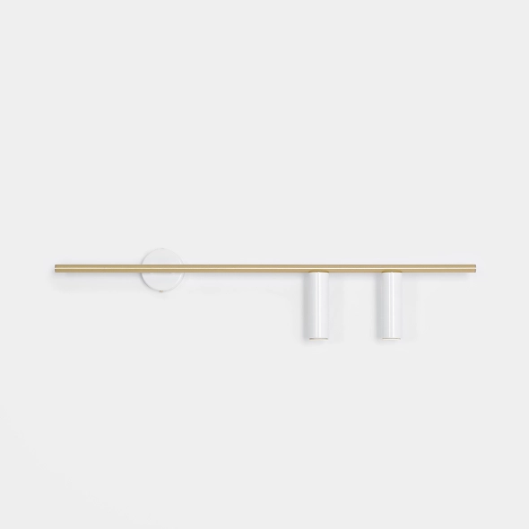 A modern two-point wall lamp with a simple form, the Trevo 2 White Brass is a wall lamp made of the highest quality materials with a noble finish. The bright gold is a brushed brass effect, the light-emitting tubes are covered with a white lacquer with a glossy effect. Bulb thread GU10/ fi 35mm. The presented lamp is a right-hand model. We also offer a left-hand wall lamp, which makes it possible to hang the lamps together (mirror effect) e.g. over the head of the bed in the bedroom.