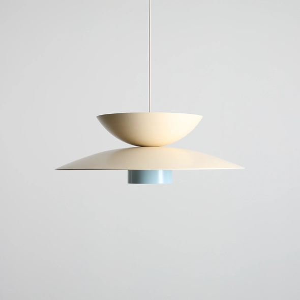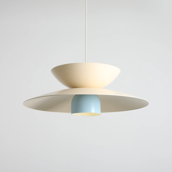 The TEYA modular pendant lamp is a timeless design inspired by Scandinavian minimalism and a delicate play of colors. In this version, a soft cream dominates both the top and middle modules, while the baby blue bottom shade adds a refreshing touch without disrupting the composition. With its harmonious proportions, soft lines, and calming color palette, this lamp fits beautifully in bright dining areas, kitchens, and cozy living spaces. A functional and stylish choice for those who appreciate understated design with a subtle splash of color.
