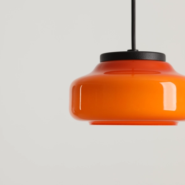 • Small pendant lamp made of glass in intense orange color BONBON 2.0 S ORANGE designed by Mikołaj Nicer (Nicer Design)