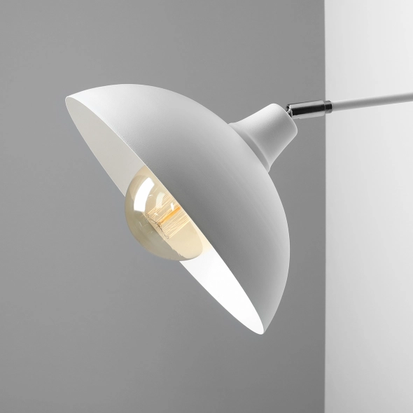 Nowoczesny kinkiet z szerokim, płaskim kloszem stanowi uzupełnienie serii Espace. Kinkiet malowany proszkowo na biały mat, przegub sterujący nachyleniem klosza pokryty jest chromem. Na życzenie klienta może być złoty (mosiężny) lub biały