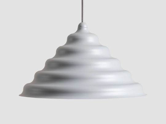 Proces produkcji lamp FALA opiera się na zaawansowanej technologii wyoblania stali, która zaskakująco dobrze poddaje się kształtowaniu, stając się „płynną” pod rękami doświadczonych rzemieślników.