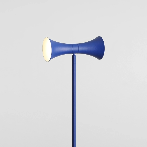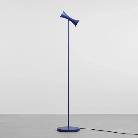 KIBO FLOOR 2 COBALT to lampa podłogowa zaprojektowana przez Nikodema Szpunara, która łączy rzeźbiarską formę z mocnym, szlachetnym kolorem. Kobaltowe wykończenie dodaje wnętrzu głębi i elegancji - świetnie wygląda w towarzystwie jasnych ścian, metalu, szkła, a także ciepłego drewna. Podwójny klosz tworzy wyrazisty detal, który przyciąga wzrok, ale nie przytłacza przestrzeni.