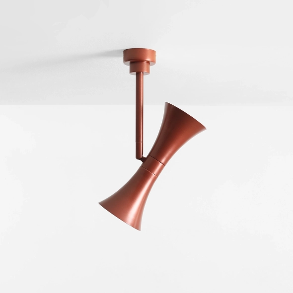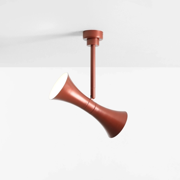 KIBO CEILING 2 RUSTY to niewysoki plafon (35 cm), który łączy rzeźbiarską formę z ciepłym, eleganckim ceglanym odcieniem. Dwa symetryczne klosze na regulowanych przegubach pozwalają precyzyjnie kierować światło, dzięki czemu plafon świetnie sprawdza się w pomieszczeniach, w których potrzebujesz praktycznego i dobrze zaplanowanego oświetlenia. Podwójne źródło światła wspiera równomierne doświetlenie przestrzeni, a ceglane wykończenie pięknie współgra z drewnem, neutralnymi barwami, betonem i aranżacjami w stylu loft lub mid-century. To propozycja, która ociepla wnętrze i dodaje mu charakteru bez przesady. Lampa sprzedawana jest w zestawie ze źródłem światła GU10.