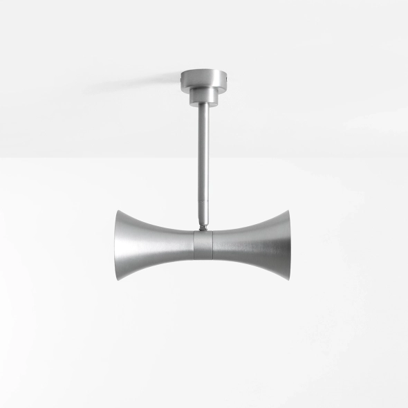 KIBO CEILING 2 STEEL to niewysoki plafon (35 cm) w wykończeniu surowej stali, który łączy techniczną estetykę z rzeźbiarską formą. Dwa symetryczne klosze na regulowanych przegubach umożliwiają precyzyjne ustawienie kierunku światła, co sprawdza się szczególnie w korytarzach, kuchniach, gabinetach i nowoczesnych strefach dziennych. Podwójne źródło światła pomaga skutecznie doświetlić przestrzeń, a stalowe wykończenie świetnie współgra z betonem, szkłem, czernią i minimalistycznymi materiałami. To plafon, który wygląda wyraziście, ale pozostaje elegancki i funkcjonalny. Lampa sprzedawana jest w zestawie ze źródłem światła GU10.