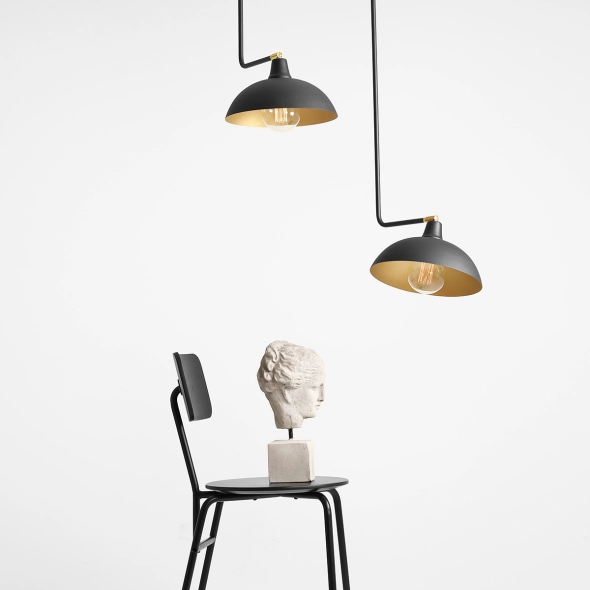 Pojedynczy, dłuższy plafon ESPACE to funkcjonalna i niebanalna propozycja doświetlenia przestrzeni. Charakterystycznym elementem tej lampy jest płaski klosz, który dzięki przegubowi w kolorze złotym możemy skierować w dowolnym kierunku. Plafon znakomicie prezentuje się w sąsiedztwie krótszych modeli z tej samej serii.
