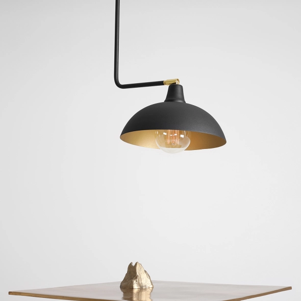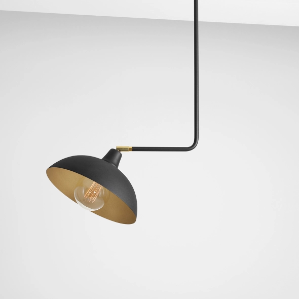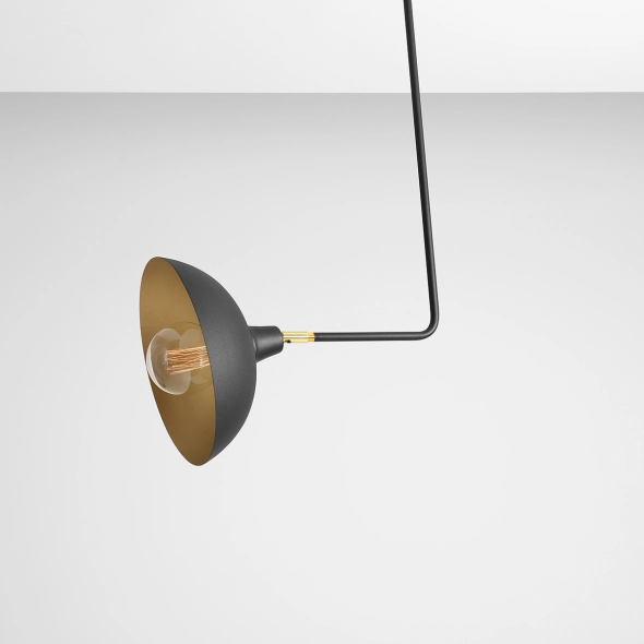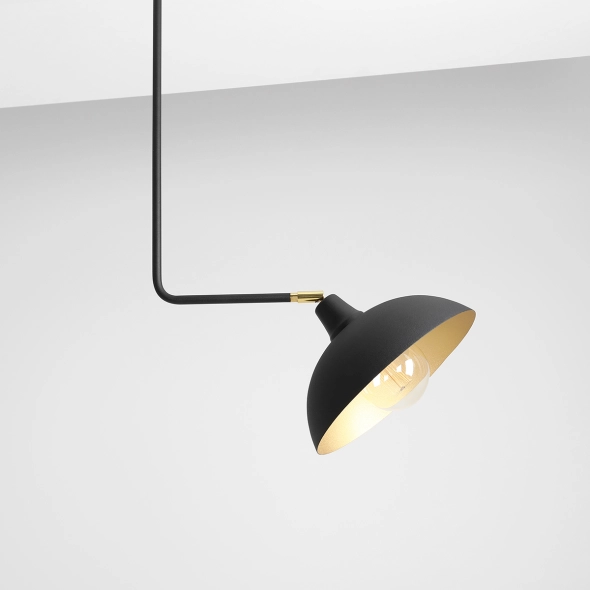 Pojedynczy, krótszy plafon ESPACE to funkcjonalna i niebanalna propozycja doświetlenia przestrzeni. Charakterystycznym elementem tej lampy jest płaski klosz, który dzięki przegubowi w kolorze złotym możemy skierować w dowolnym kierunku. Plafon znakomicie prezentuje się w sąsiedztwie dłuższych modeli z tej samej serii.