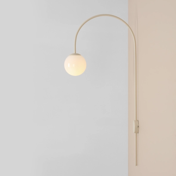 La lampada da parete Una Wall presenta una linea arcuata che segue il trend attuale delle forme morbide negli interni. Questo applique dal raffinato finish crema si adatta sia a spazi privati, sopra il letto o vicino allo specchio, sia a luoghi pubblici come caffè e ristoranti.