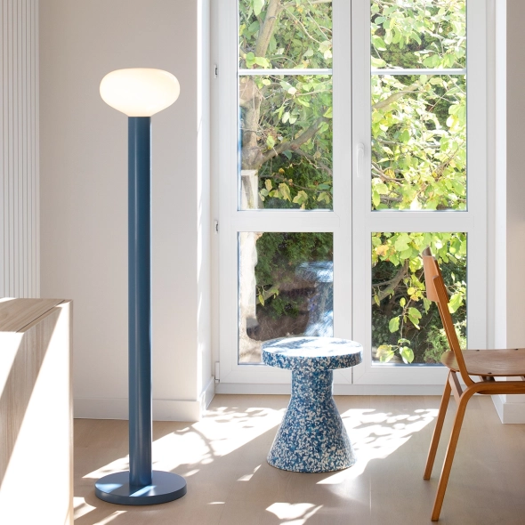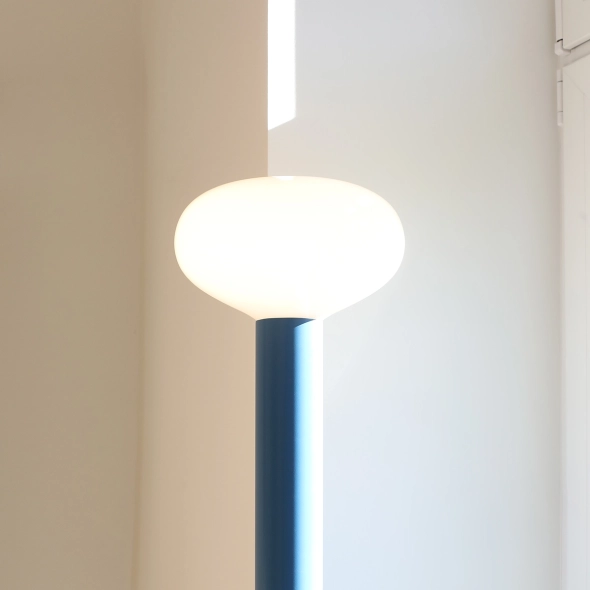 La lampada da terra FLO FLOOR SKY porta una ventata di freschezza nei tuoi interni, con il suo delicato blu profondo che ricorda un cielo sereno sopra il mare. La forma organica del paralume e la luce soffusa del vetro opalino creano un’atmosfera rilassante e armoniosa, rendendo questa lampada perfetta per il soggiorno, la camera da letto o la zona relax.