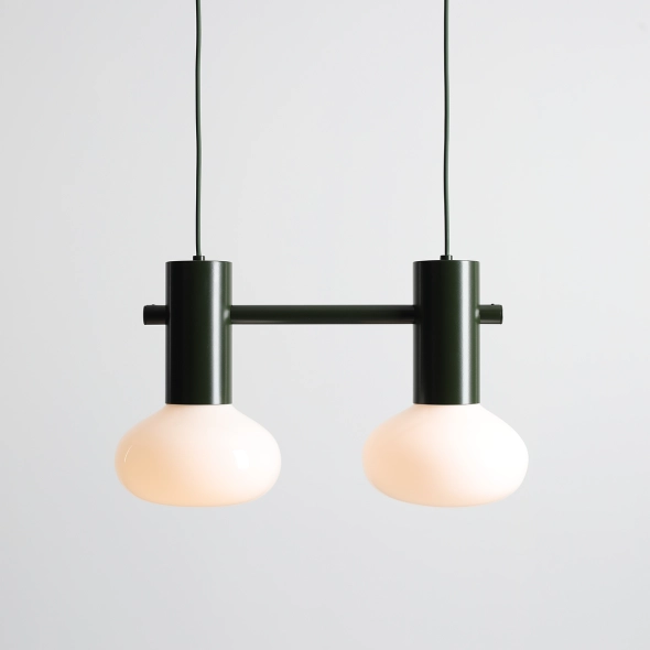 La profonda tonalità verde di FLO 2 MOSS richiama la tranquillità della natura, esaltata da due paralumi uniti da un semplice ponte. Perfetta per ambienti che cercano armonia con la natura: stile organico, modern classic o vintage.