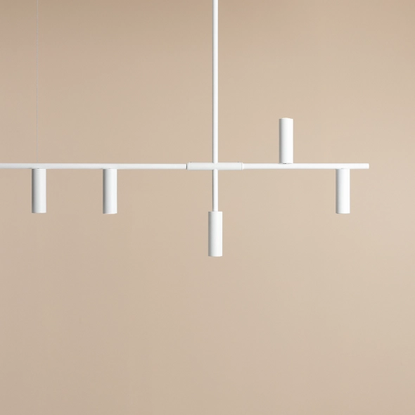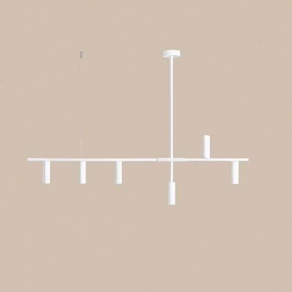 La lampada Trevo 6 in finitura bianca opaca è una proposta minimalista con cinque fonti di luce rivolte verso il basso e un tubo che proietta la luce verso l’alto, creando un effetto visivo insolito. Design interessante e materiali di altissima qualità soddisferanno anche i clienti più esigenti.