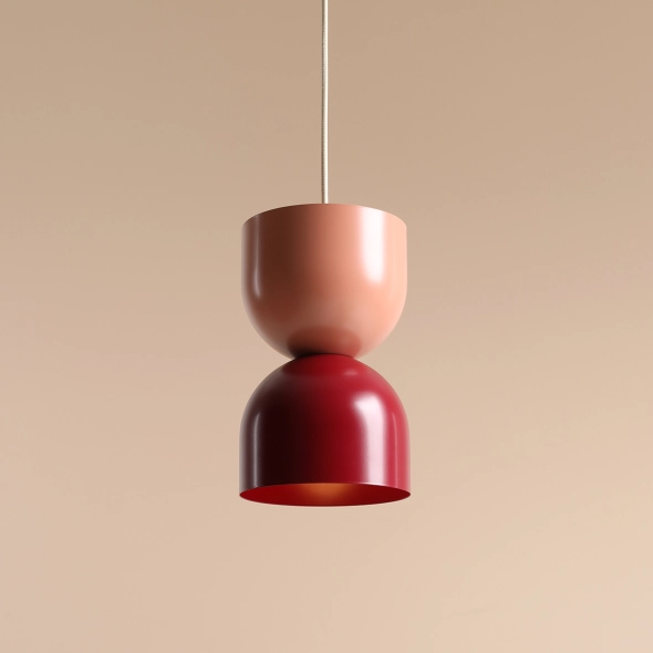 Lampa wisząca LUI z kolekcji modułowych lamp naszej marki to rozwiązanie dla zwolenników minimalizmu, symetrycznych form i barwnych dodatków we wnętrzach. Lampa posiada dwa jednakowej wielkości moduły, w dwóch wykończeniach kolorystycznych: burgund i koral. Całość zwieńczona jasnym przewodem tekstylnym. Prosta konstrukcja umożliwia dowolne kombinacje montażu. Koralowy klosz może być założony na górze (jak na zdjęciu), jak i na dole, czyli w odwrotnej kombinacji. Ta minimalistyczna lampa wisząca doskonale zaprezentuje się nisko zwieszona nad szafkami nocnymi, blatem lub stołem.