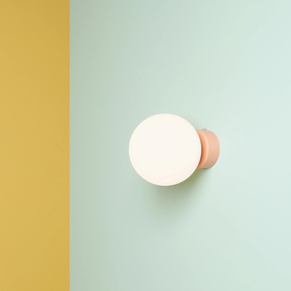 Kinkiet z kolekcji Ball w nowym wykończeniu kolorystycznym Coral. Jest to delikatny koralowy odcień nr 3012 z palety RAL. Lampa stanowi ciekawy dodatek do wnętrza i służy jako oświetlenie miejsca nad wezgłowiem łóżka, komodą lub jako boczne światło przy lustrach.