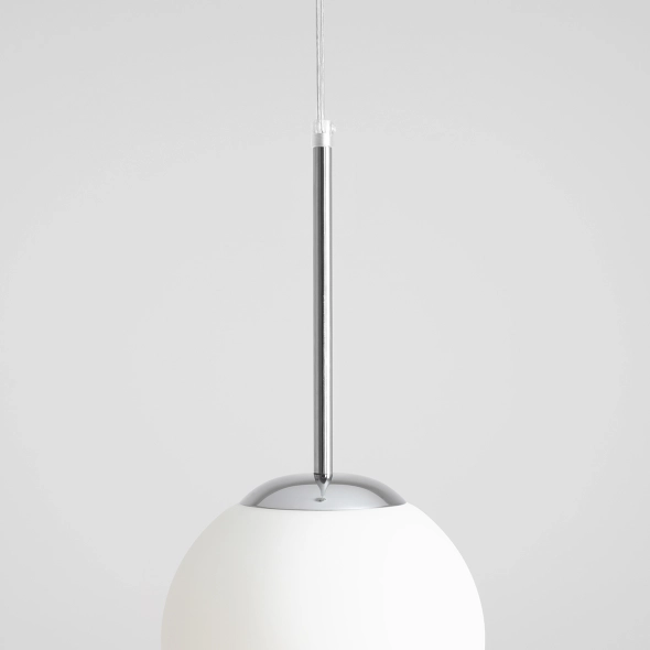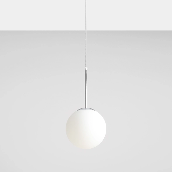 Nowoczesna lampa wisząca Bosso to propozycja dla amatorów prostoty i elegancji. Kulista lampa o satynowym wykończeniu z metalowymi elementami w chromowej powłoce to nie tylko źródło światła w Twoim domu, ale i elegancki element wyposażenia wnętrza. Dostępne również inne wersje kolorystyczne. Klosz posiada średnicę 20cm.