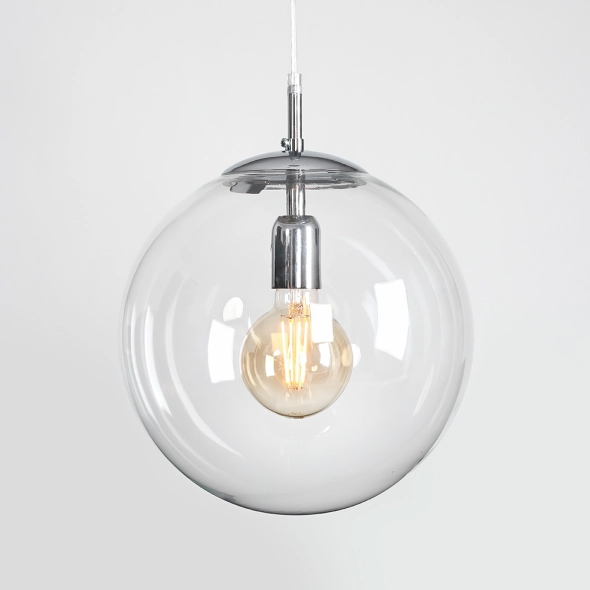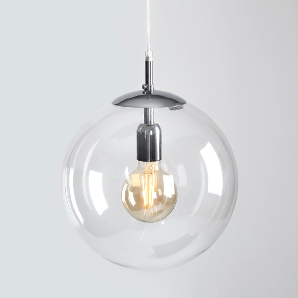 Dodaj swojej przestrzeni nowoczesny akcent dzięki kulistej lampie wiszącej GLOBE CHROME. Jej minimalistyczna forma i transparentny, szklany klosz o średnicy 30 cm idealnie współgrają z przestrzeniami urządzonymi w duchu nowoczesnego designu. Subtelne metalowe elementy w chromowym wykończeniu dodają elegancji i blasku. Lampa nie tylko oświetli wnętrze, ale także stanie się jego stylowym dopełnieniem. Długość przewodu może zostać dopasowana do potrzeb klienta na specjalne zamówienie.