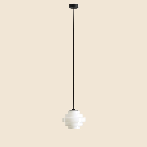 Lampa sufitowa FILO Ceiling Milky to elegancka oprawa oświetleniowa w stylu retro, inspirowana estetyką lat 50. i 60. XX wieku. Szklany, mleczny klosz o średnicy 14 cm pięknie rozprasza światło, nadając wnętrzu przytulnego charakteru. Geometryczny design klosza i minimalistyczne mocowanie tworzą harmonijną całość, która doskonale wpisuje się w styl mid century modern.