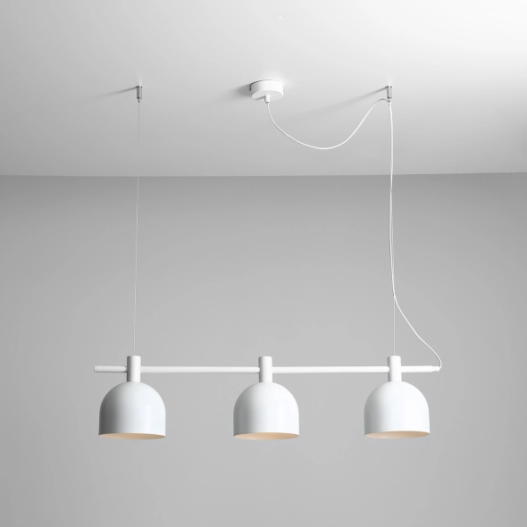 BERYL 3 White to minimalistyczna lampa wisząca z trzema punktami światła, zawieszonymi na metalowych linkach z możliwością regulacji wysokości. Biała, matowa oprawa podkreśla nowoczesny charakter lampy, a prosty design sprawia, że doskonale komponuje się z wnętrzami w stylu modern, skandynawskim czy minimalistycznym. Idealna nad stół w jadalni, do salonu czy kuchni.