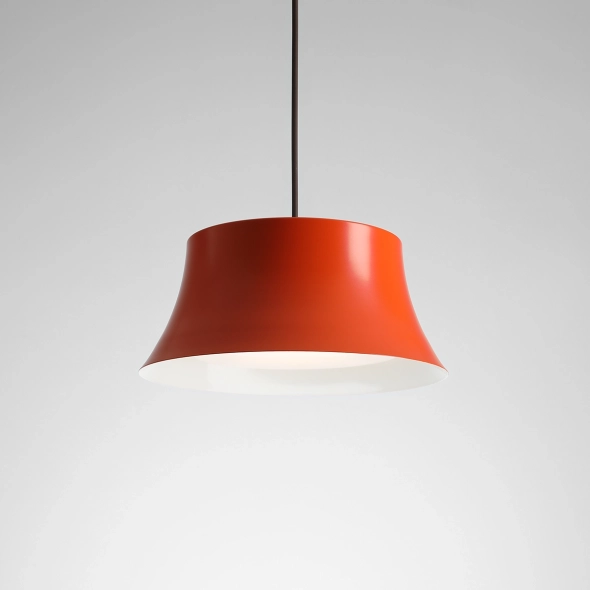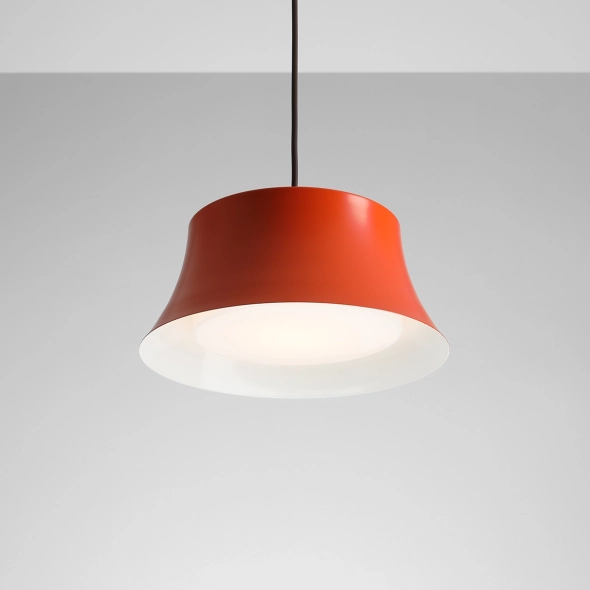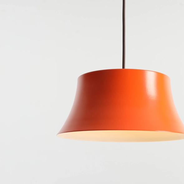 Lampa wisząca Kibo Flare (proj. Nikodem Szpunar) to energetyczna interpretacja minimalistycznej formy, w której kolor staje się pełnoprawnym elementem projektu. Klosz malowany proszkowo w intensywnym pomarańczu Flare wyróżnia się jednolitą, trwałą powierzchnią, a jego szeroka, prosta bryła (25 cm) świetnie porządkuje kompozycję wnętrza. Białe wnętrze klosza skutecznie odbija światło, zapewniając komfortowe, równomierne oświetlenie i przyjemną atmosferę. Lampa zawieszona jest na regulowanym przewodzie, co ułatwia dopasowanie wysokości nad stołem, wyspą kuchenną lub w strefie wypoczynku. Model dostępny jest w dwóch wariantach do wyboru: z widocznym źródłem światła, które podkreśla graficzny charakter formy, oraz w wersji z dodatkowym szklanym kloszem, który delikatnie zmiękcza odbiór lampy i światła. Lampa wyposażona jest w wymienne źródło światła GX53, które znajduje się w zestawie.