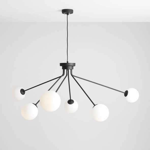 Kolekcja HOLM to nowoczesne i designerskie oświetlenie, które łączy minimalizm z efektowną formą i grą perspektywy. Charakterystyczne dla serii są asymetryczne ramiona i kuliste, mleczne klosze, które równomiernie rozprowadzają światło, tworząc przyjemną atmosferę. Lampy wiszące i plafony HOLM występują w wersjach z 6 i 10 źródłami światła, dzięki czemu można je dopasować zarówno do mniejszych, jak i przestronnych wnętrz. To idealne rozwiązanie dla osób, które chcą połączyć funkcjonalność z wyrazistym, nowoczesnym designem!