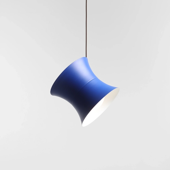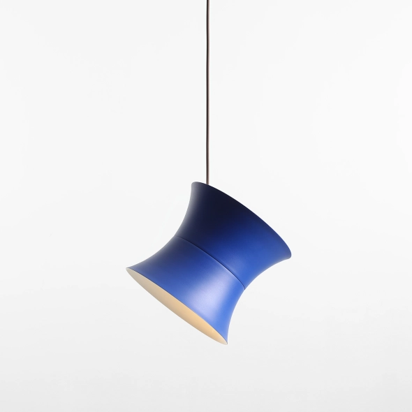 Duży, metalowy klosz o średnicy 25 cm w kobaltowym kolorze zestawiony jest z wewnętrznym, białym kloszem w połysku o średnicy 16 cm. Takie połączenie zapewnia efektowne, a jednocześnie komfortowe światło, które nie razi i pięknie podkreśla formę lampy.