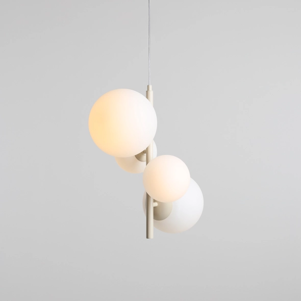 Efektowna lampa wisząca Bloom 4 Cream to modne i efektowne oświetlenie, dające przyjemne światło i niezapomniane wrażenie estetyczne. Lampa, dzięki zastosowaniu czterech źródeł światła (matowe, białe klosze w dwóch rozmiarach: 14cm i 20cm) pięknie rozświetli przestrzeń, w której się znajduje. Dedykowana jako oświetlenie główne w niewielkim salonie, lub jako lampa wisząca do sypialni. Przyjemne waniliowe wykończenie kolorystyczne to dodatkowa zaleta tej lampy.